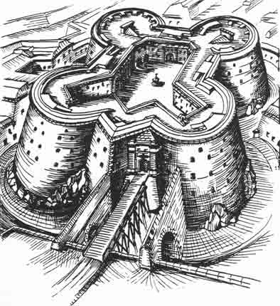 ist eine typische Bombarde in Festungsbettung. Als Hauptgeschütz