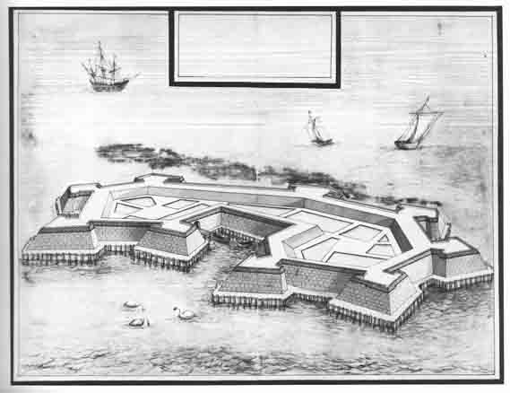 Ausgelagerte Seebefestigung (noch ohne Kanonen), gebaut auf vorgelagertem Riff bietet Platz für eine Kerneinheit von etwa 500 Mann.